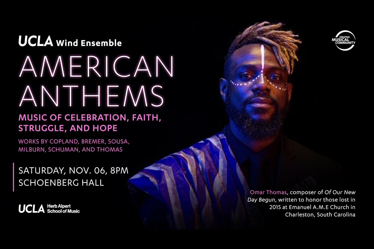 The UCLA Wind Ensemble presents American Anthems: music of celebration, faith, struggle, and hope.