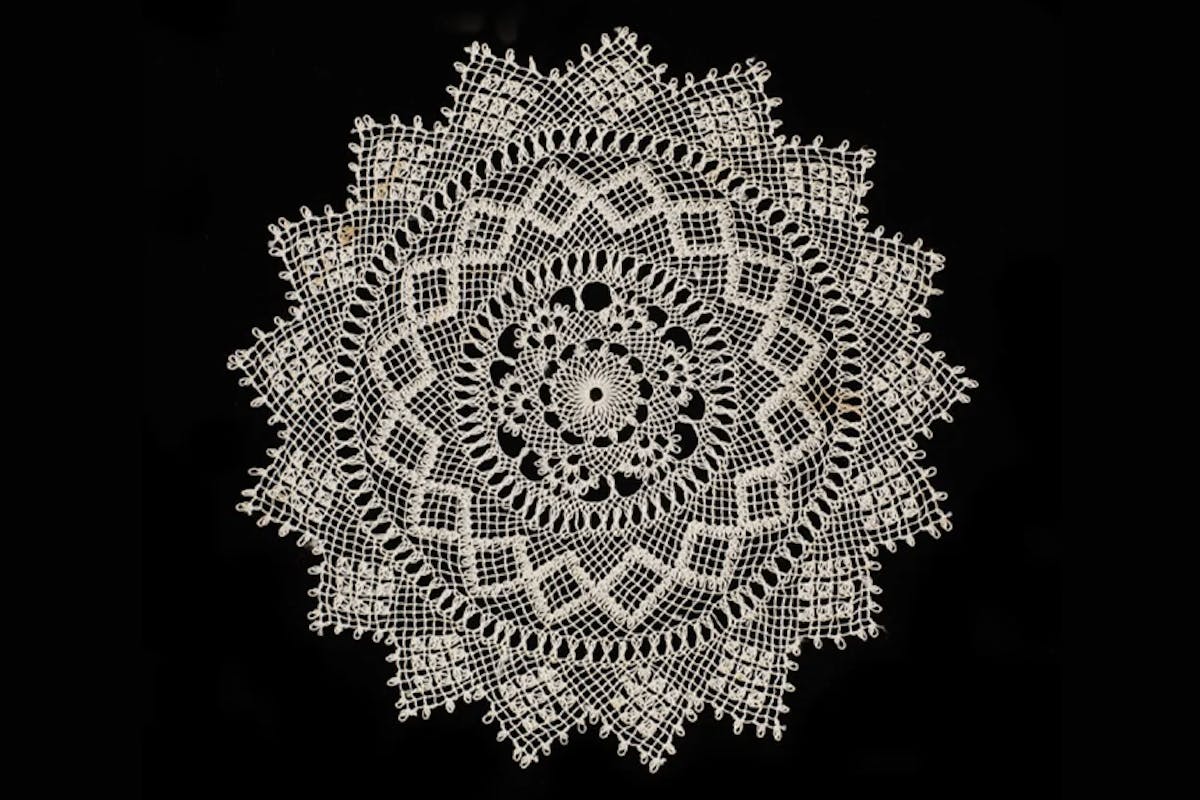 Image credit: Marie Pilibossian (b. 1898, Gesaria-Kaiseri, Turkey; d. 1986, Los Angeles, USA), Armenian needle lace, early to mid-20th century; thread and needle used as a knotting tool; Fowler Museum at UCLA, X80.1151; Gift of Marie Pilibossian