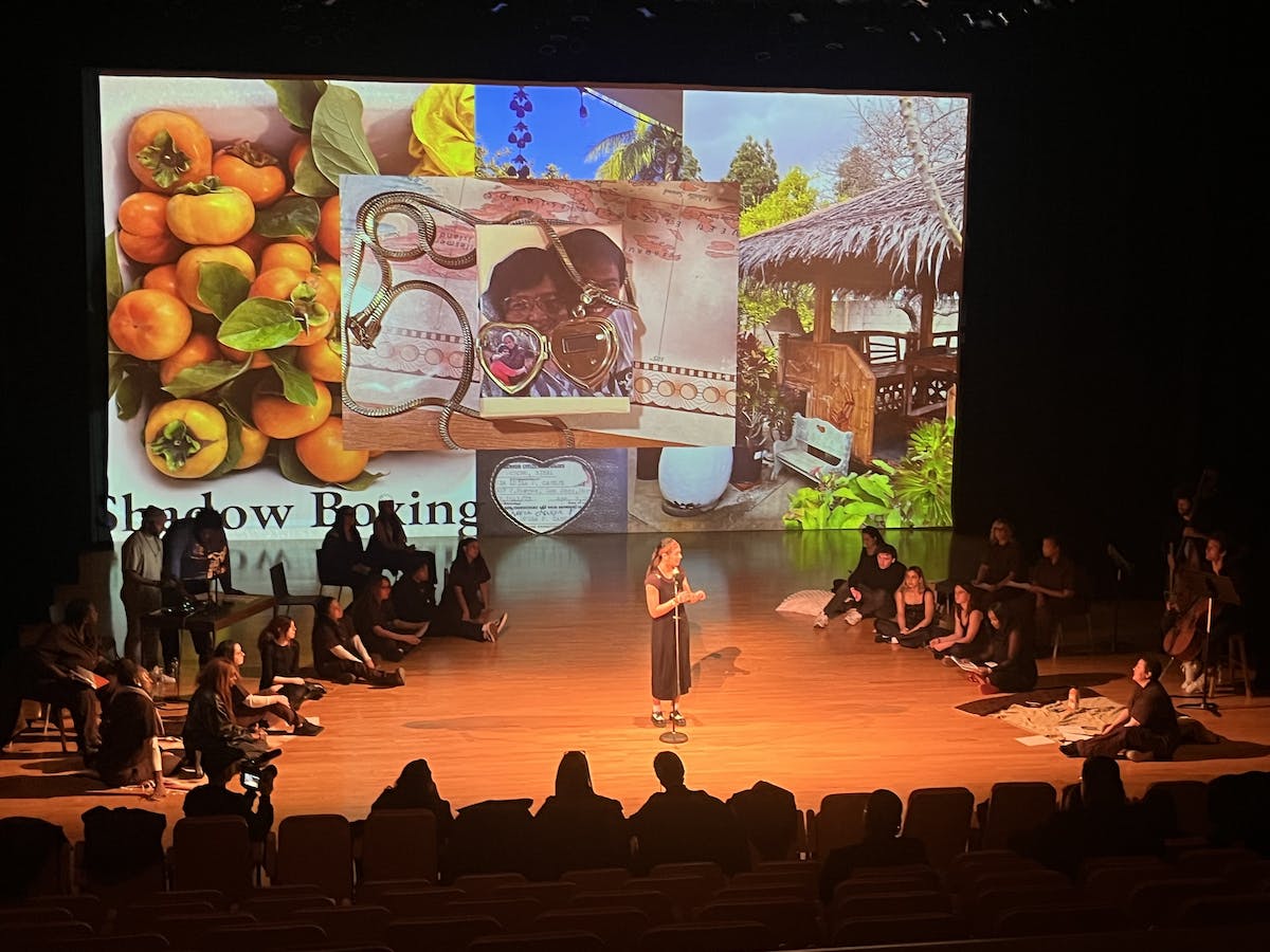 For many of the women from Victorville, the chance to take the course was also transformative. Families and friends of the incarcerated students traveled to campus, some from states away, to watch the final performance, made possible by special allowance from the warden at the facility. The group also published an anthology of the work they created together as a keepsake.